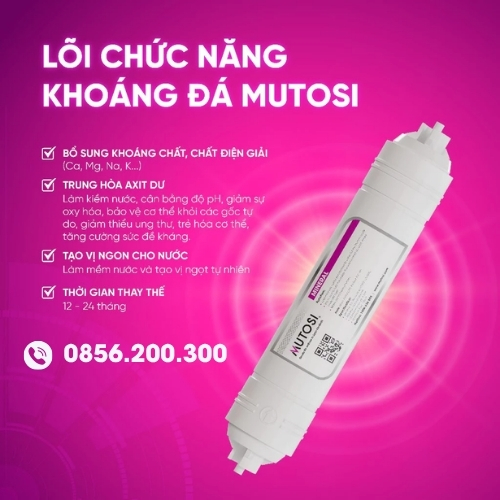 ✔ Bộ 4 lõi lọc Mutosi giúp bổ sung khoáng chất, nâng pH và cải thiện vị nước rõ rệt.