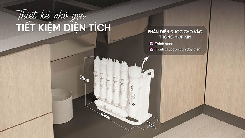 Nhờ đó, máy vừa đảm bảo hiệu quả lọc vừa tối ưu không gian sử dụng.