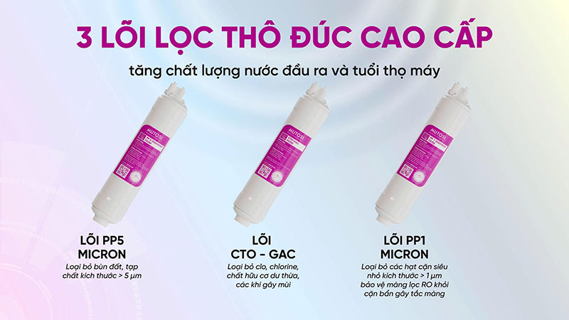 Ba lõi lọc đầu tiên giúp loại bỏ các tạp chất lớn trong nước và bảo vệ màng RO.