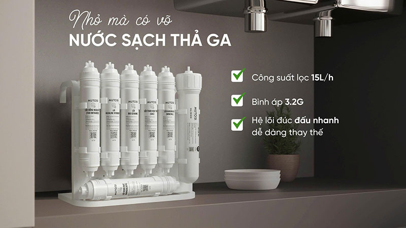 Màng RO Mutosi đóng vai trò quan trọng trong hệ thống lọc của máy.