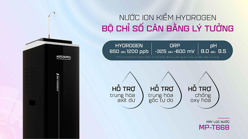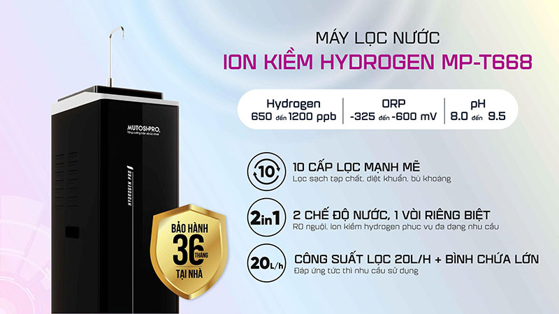 ✔ Máy lọc nước điện giải ion kiềm hydrogen Mutosi MP-T668 giải pháp 2 trong 1