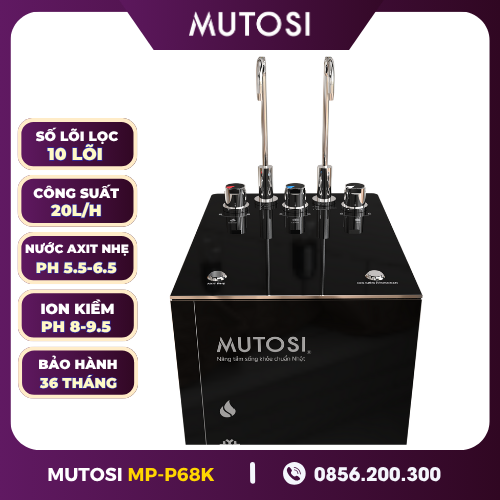 Máy Lọc Nước Điện Giải Ion Kiềm Hydrogen Nóng Lạnh Nguội Mutosi MP-P68K