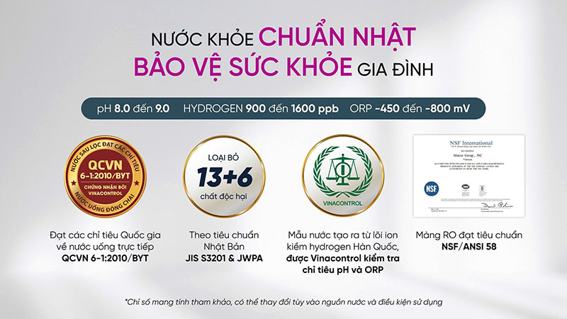 (Lưu ý: chỉ số nước có thể thay đổi tùy vào nguồn nước đầu vào và điều kiện sử dụng.)
