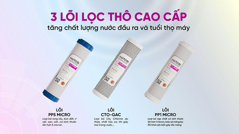 Ba lõi lọc đầu tiên đóng vai trò loại bỏ các tạp chất lớn trước khi nước đi vào màng RO.
