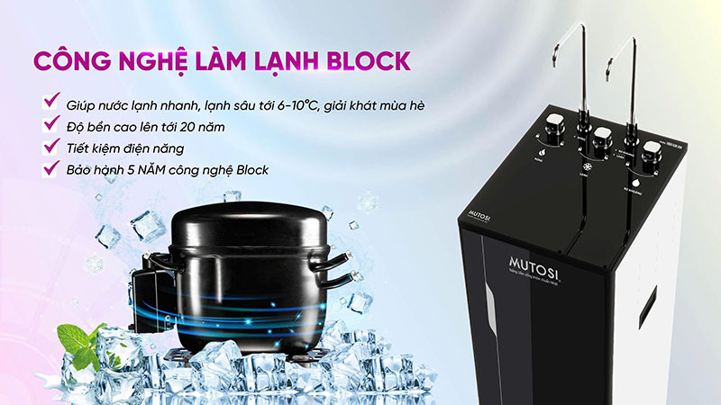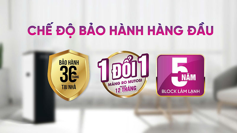 | Bảo hành | 36 tháng điện, Block 5 năm, 1 đổi 1 màng RO 12 tháng |