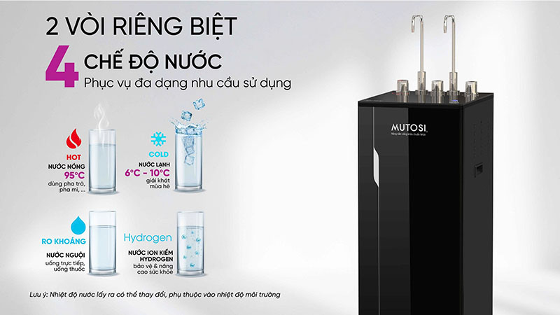 Máy lọc nước Mutosi MP-S159HCK cung cấp 4 chế độ nước tiện dụng:
