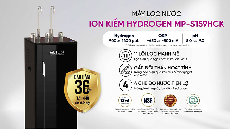 Đánh giá Máy Lọc Nước Nóng-Lạnh-Nguội-Ion Kiềm Hydrogen Mutosi MP-S159HCK