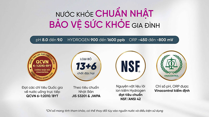 (Lưu ý: chỉ số nước có thể thay đổi tùy nguồn nước đầu vào và điều kiện sử dụng.)