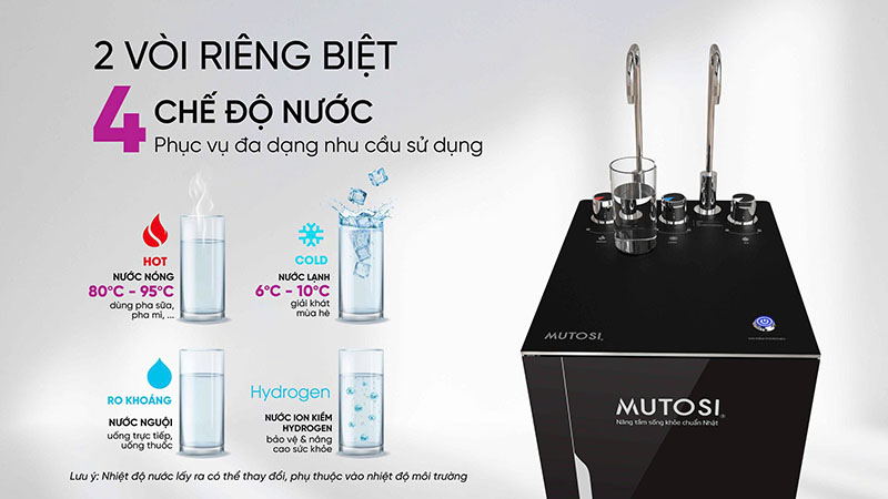| Số loại nước | 4 (Nóng – Lạnh – RO – Ion kiềm Hydrogen) |