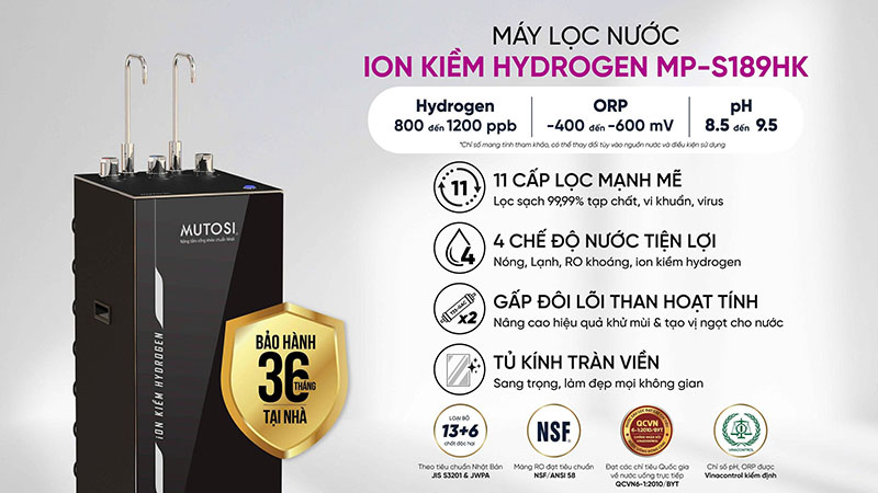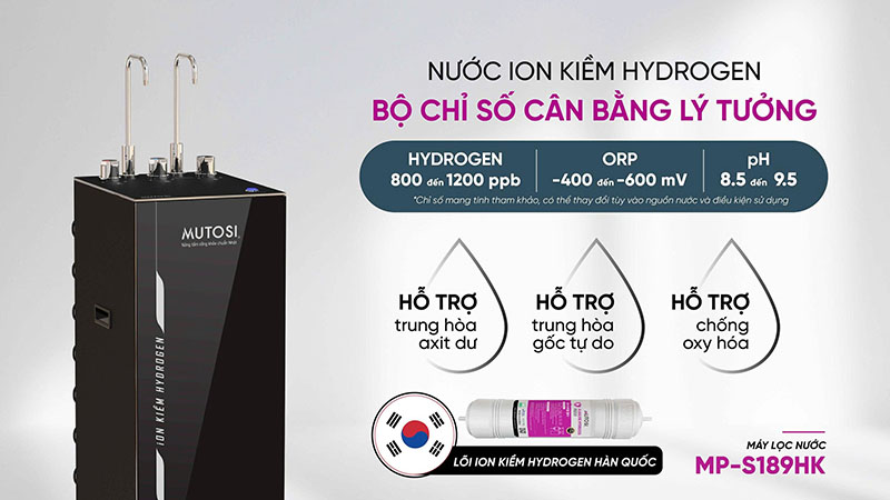 Điểm nổi bật của Mutosi MP-S189HK là khả năng tạo nước ion kiềm hydrogen với các chỉ số lý tưởng: