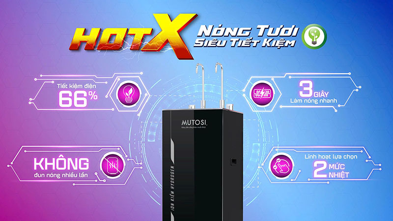 Mutosi MP-S199HIK được trang bị công nghệ nóng tươi HotX, một bước tiến mới giúp nâng cao trải nghiệm sử dụng nước nóng trong gia đình.