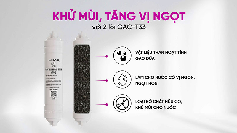 ✔ 2 lõi T33-GAC: khử mùi, tạo vị ngọt