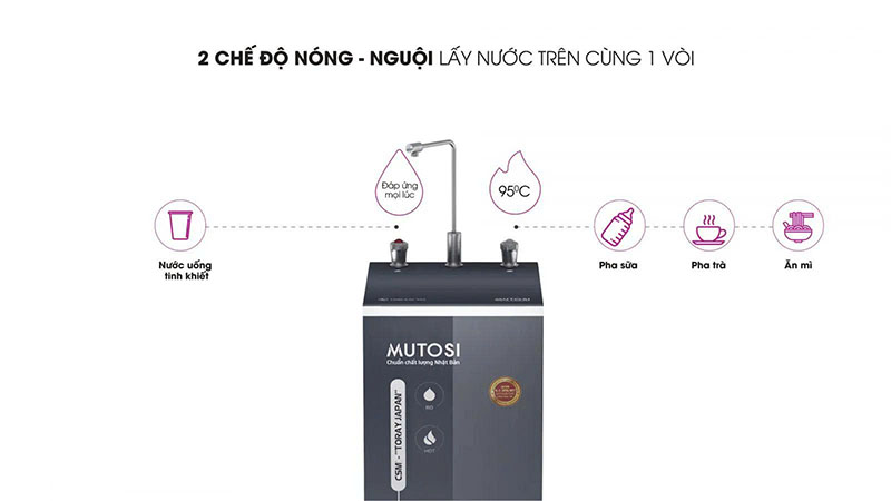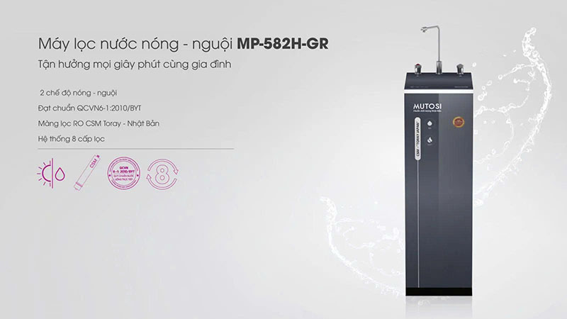 Đừng bỏ lỡ cơ hội sở hữu Máy Lọc Nước Nóng Nguội 8 Lõi Mutosi MP-582H-GR để nâng tầm tiện nghi sống! Với 8 cấp lọc mạnh mẽ và màng RO công nghệ Nhật Bản, MP-582H-GR cung cấp nguồn nước tinh khiết đạt chuẩn uống trực tiếp QCVN 6-1:2010/BYT, đồng thời tích hợp chức năng làm nóng/nguội tức thì, phục vụ mọi nhu cầu sinh hoạt của gia đình bạn một cách nhanh chóng và an toàn.