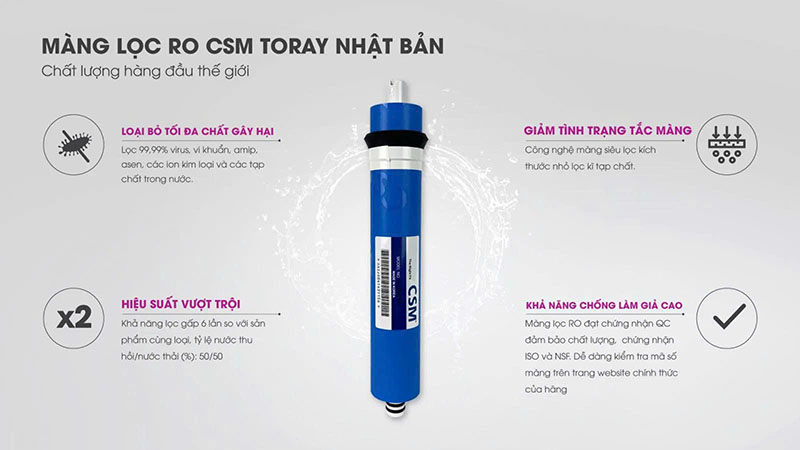 Màng được sản xuất trên dây chuyền hiện đại tại Hàn Quốc, với vật liệu lớp màng cao cấp nhập khẩu từ Mỹ – đảm bảo chất lượng lọc vượt trội và độ bền lâu dài trong quá trình sử dụng.